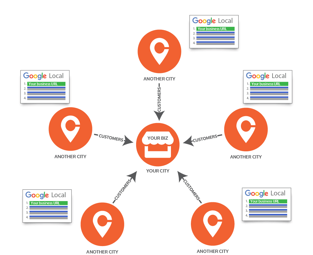 While Google employs this method to offer users the most relevant outcomes, it presents an opportunity for businesses. Appearing in search results for a city they serve, even if not physically located there, can be advantageous. Many marketing agencies charge substantial fees (ranging from $500 to $900) per month for EACH city to optimize your business’s visibility in search results across multiple cities.